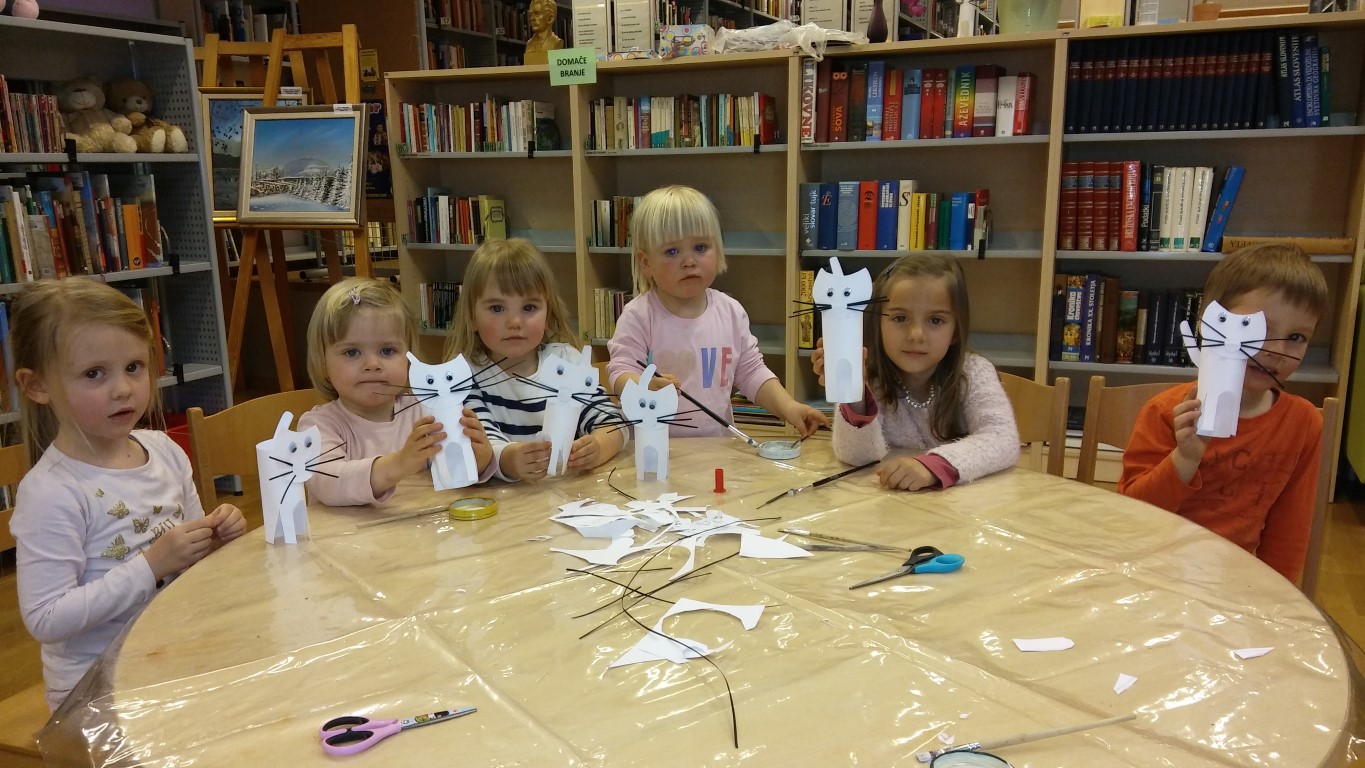 V torek, 28. marca 2017, je v Občinski knjižnici Prebold potekala pravljična ura. Na začetku smo se vprašali, ali si je že kdo izmed nas zaželel, da bi lahko letel visoko visoko. Kaj bi se zgodilo, kaj bi videl, je to sploh mogoče? Ljudje smo pač samo ljudje, in ne ptice s krili. Toda želja se vendarle lahko uresniči, saj imamo letala, helikopterje, rakete, celo balone. Z neba se vidi marsikaj. Astronavti, ki potujejo daleč v vesolje, lahko opazujejo planete, raziskujejo osončje. In nato se vrnejo na Zemljo. Kolikor vemo, je naš planet edini, na katerem je zaradi toplote, svetlobe in vode mogoče življenje. Tako smo modrovali, nato pa smo prebrali pravljico o tigrastem mačkonu Moltu, ki si sam ne more izpolniti največje želje, da bi poletel. To mu uspe, ko mu pomagata mačja prijatelja. Z balonom poletijo nad staro lipo, nad hišo in nad hrib, precej više, kot bi si sploh kdaj upali sanjati. Ugotovijo, da je letenje krasno, še posebno v družbi dobrih prijateljev. V ustvarjalnem delu pravljične ure smo izdelali vsak svojega mucka.