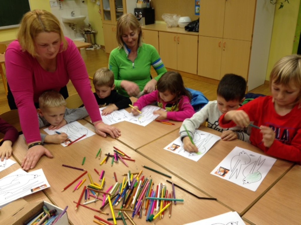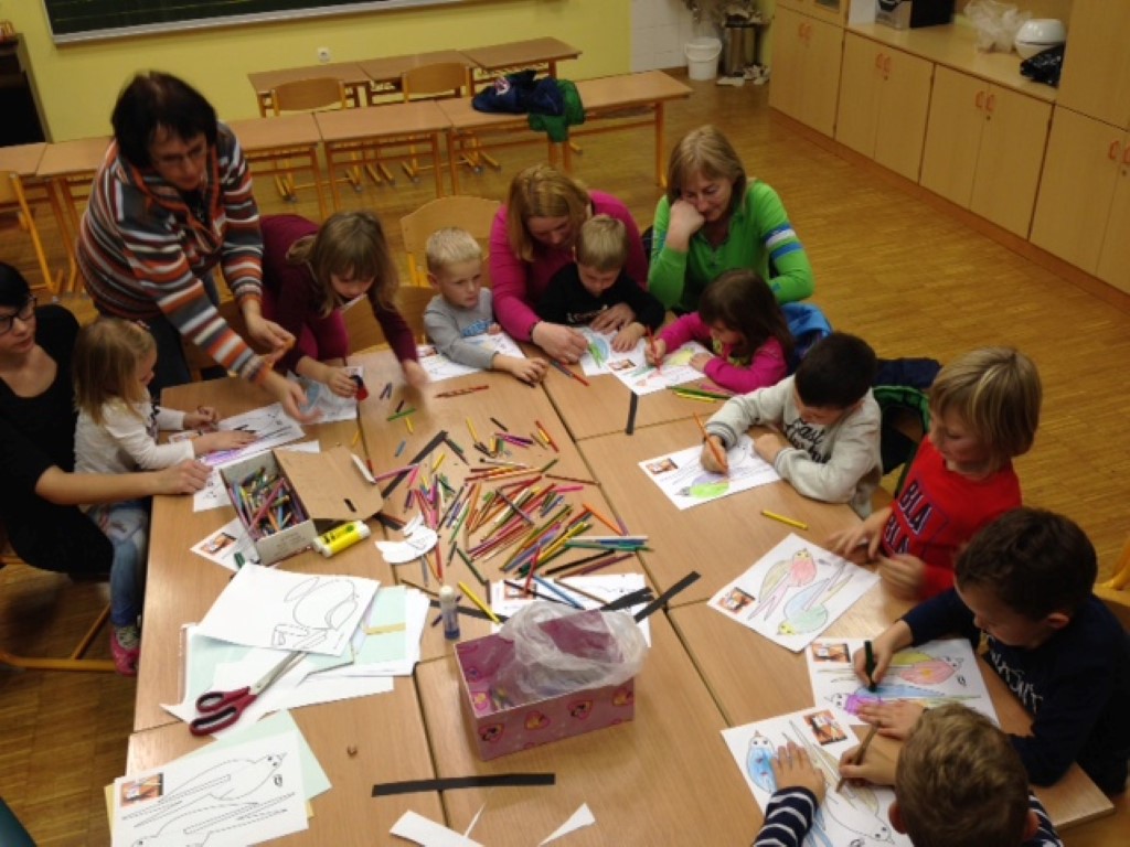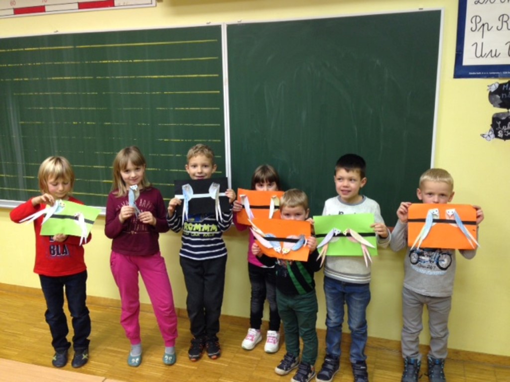 Na koncu smo se z otroki pogovarjali o pticah: katera je največja, katera najmanjša, katera najhitrejša. Poslušali smo tudi njihovo petje. Za konec smo si naredili svoje pisane krokarje, ampak ti se niso prepirali, čeprav so bili pobarvani v lepe pisane barve.