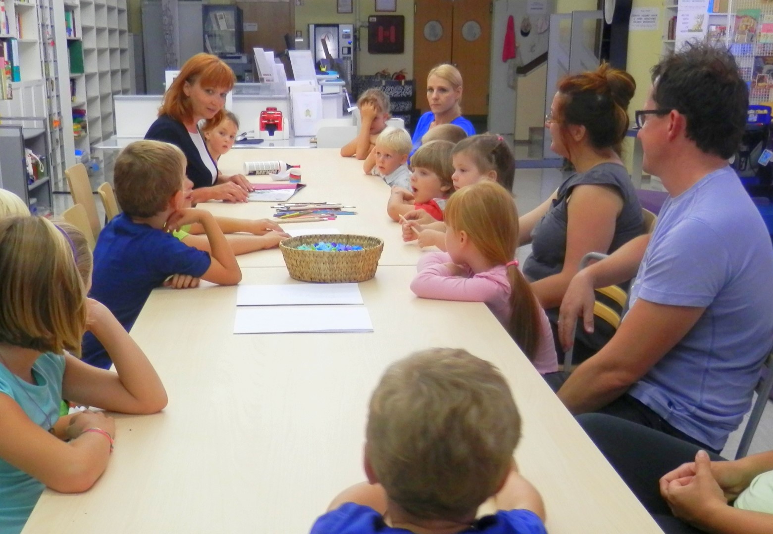 Po pravljici so otroci s starši oblikovali ribice, iz papirja izdelovali barčice in pripovedovali prave ali izmišljene doživljaje preteklih počitnic …