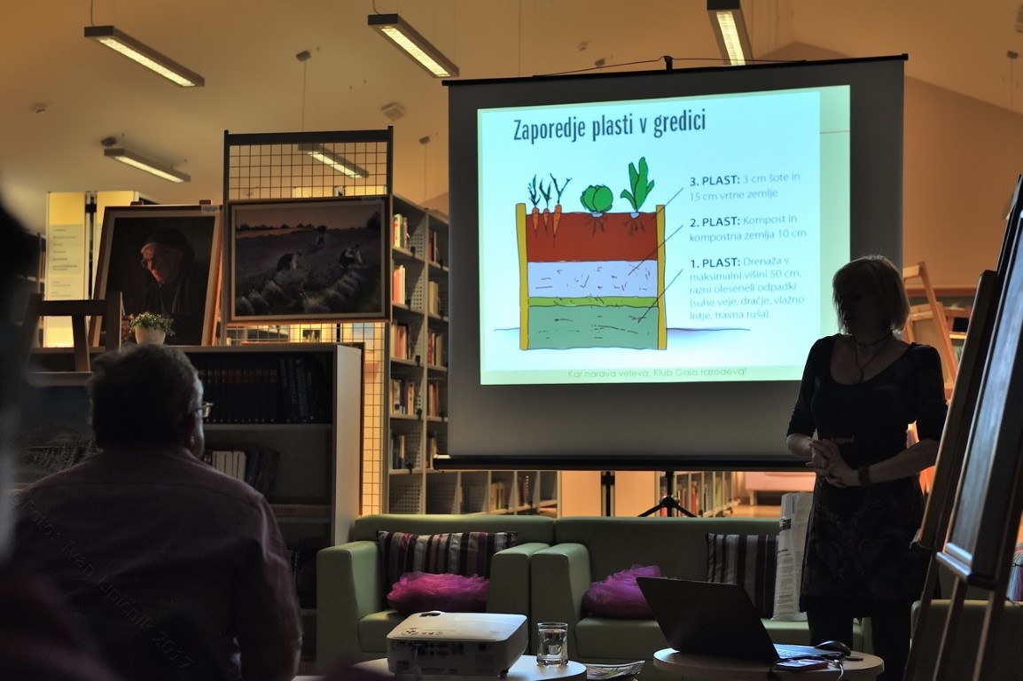 V torek, 21. marca 2017, je v Občinski knjižnici Prebold o vrtnarjenju na visokih gredah predavala Loreta Vlahović, dipl. inž. agronomije, strokovnjakinja iz Kluba Gaia. Spoznali smo, kako narediti visoko gredo in kaj posaditi, da bo pridelek kakovosten in obilen.