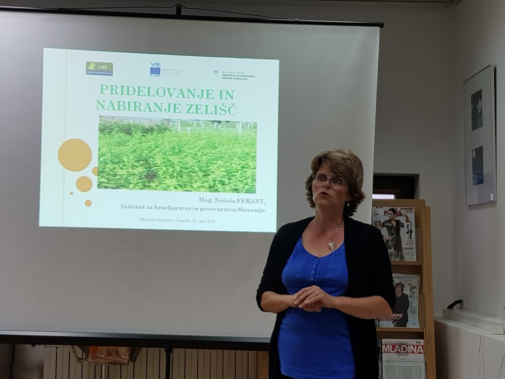 V četrtek, 10. maja 2018, smo v Občinski knjižnici Vransko prisluhnili predavanju mag. Nataše Ferant z Inštituta za hmeljarstvo in pivovarstvo Slovenije, ki nam je predstavila pridelovanje zdravilnih zelišč ter nabiranje le-teh. Podala nam je številne napotke, kako ravnati z zelišči – bogastvom, ki nam ga podarja narava, da jih bo tudi v prihodnosti dovolj za vse.