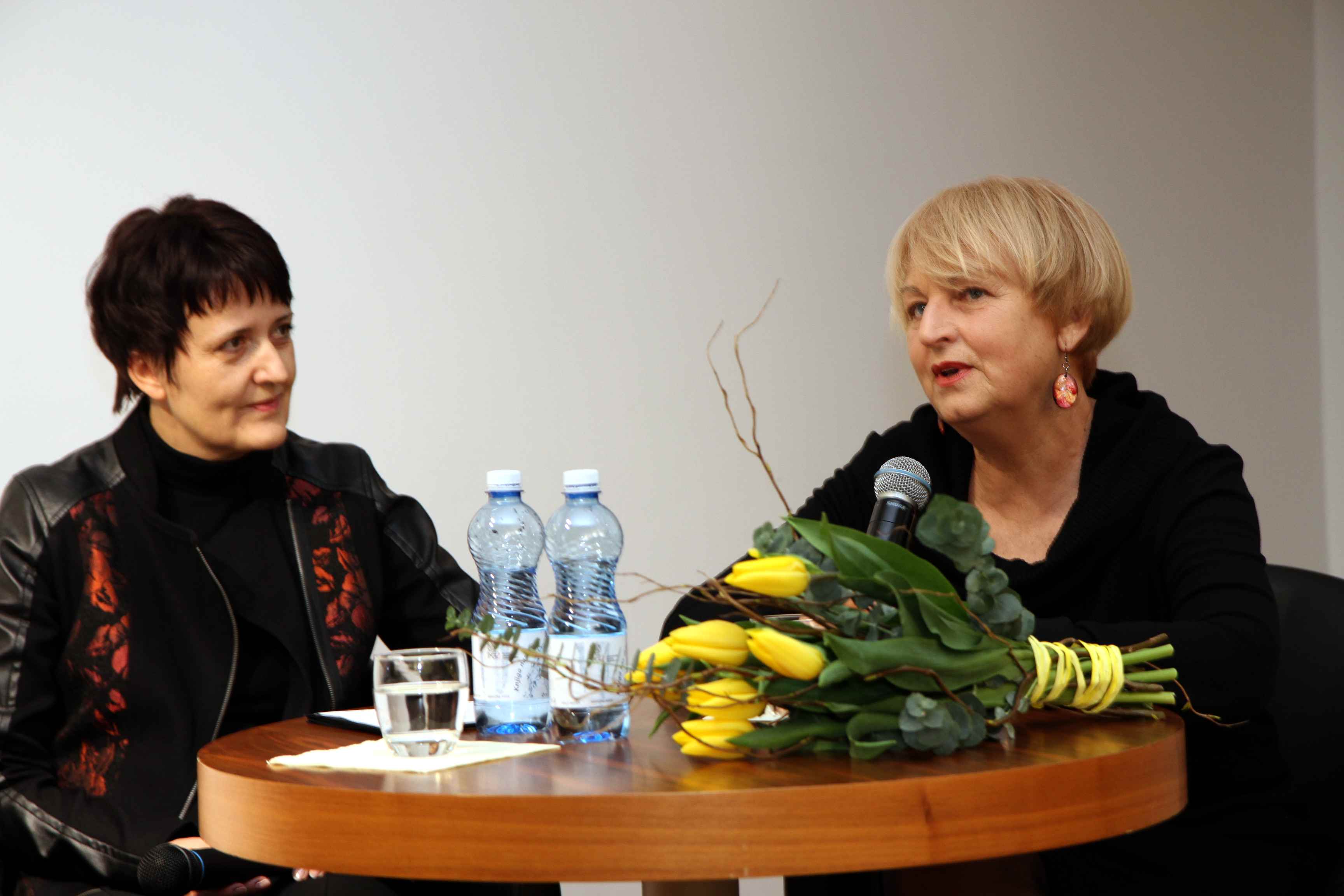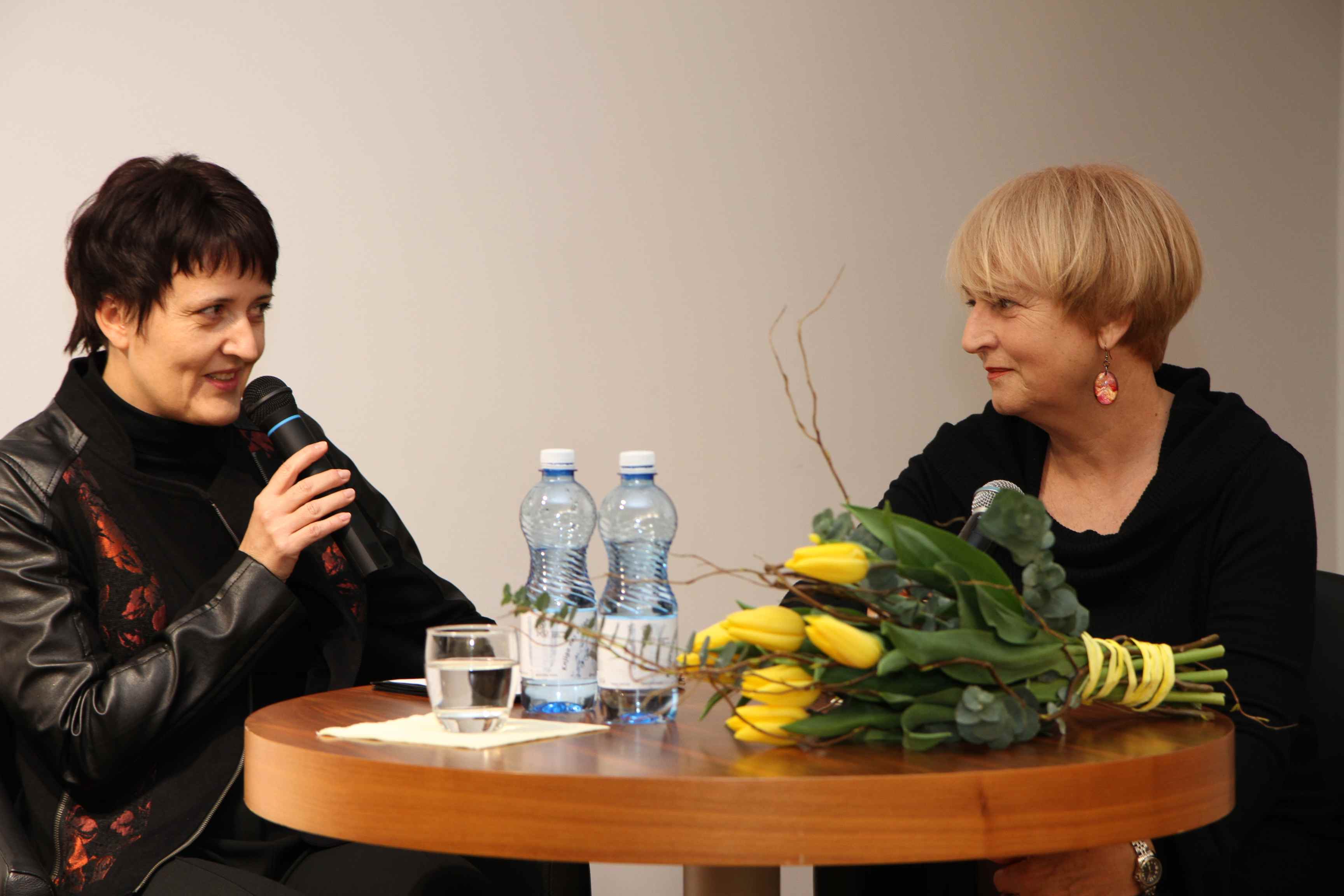 V pogovoru se je spomnila tudi Grupe Poetica iz Celja, v kateri sta poleg nje sodelovala Bogomir Veras in Miro Podjed. V času osamosvajanja sta s Tatjano Dremelj ustanovili zasebno gledališče Dva obraza.