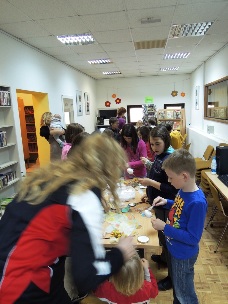 V torek, 15. aprila, smo v vranski knjižnici dali polet ustvarjalni domišljiji in spretnim prstkom naših najmlajših. Da bodo letošnji velikonočni prazniki čim lepši, smo izdelali velikonočnega zajčka ter pisane pirhe, ki smo jih krasili s servietno tehniko, z začimbami ter barvnim peskom. Kot se spodobi za praznike, ki jih naj ne bogati samo zunanji blišč, smo pa v uvodu v druženje prisluhnili velikonočni zgodbi, ki nam jo je prebrala Tjaša Pečovnik.