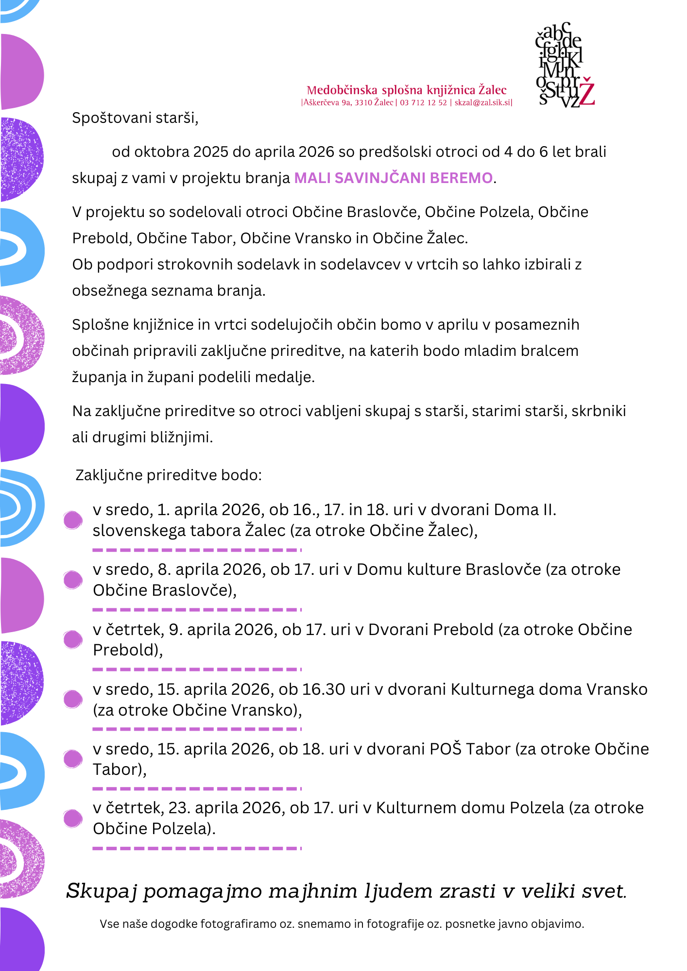 Zaključna prireditev ob koncu projekta Mali Savinjčani beremo