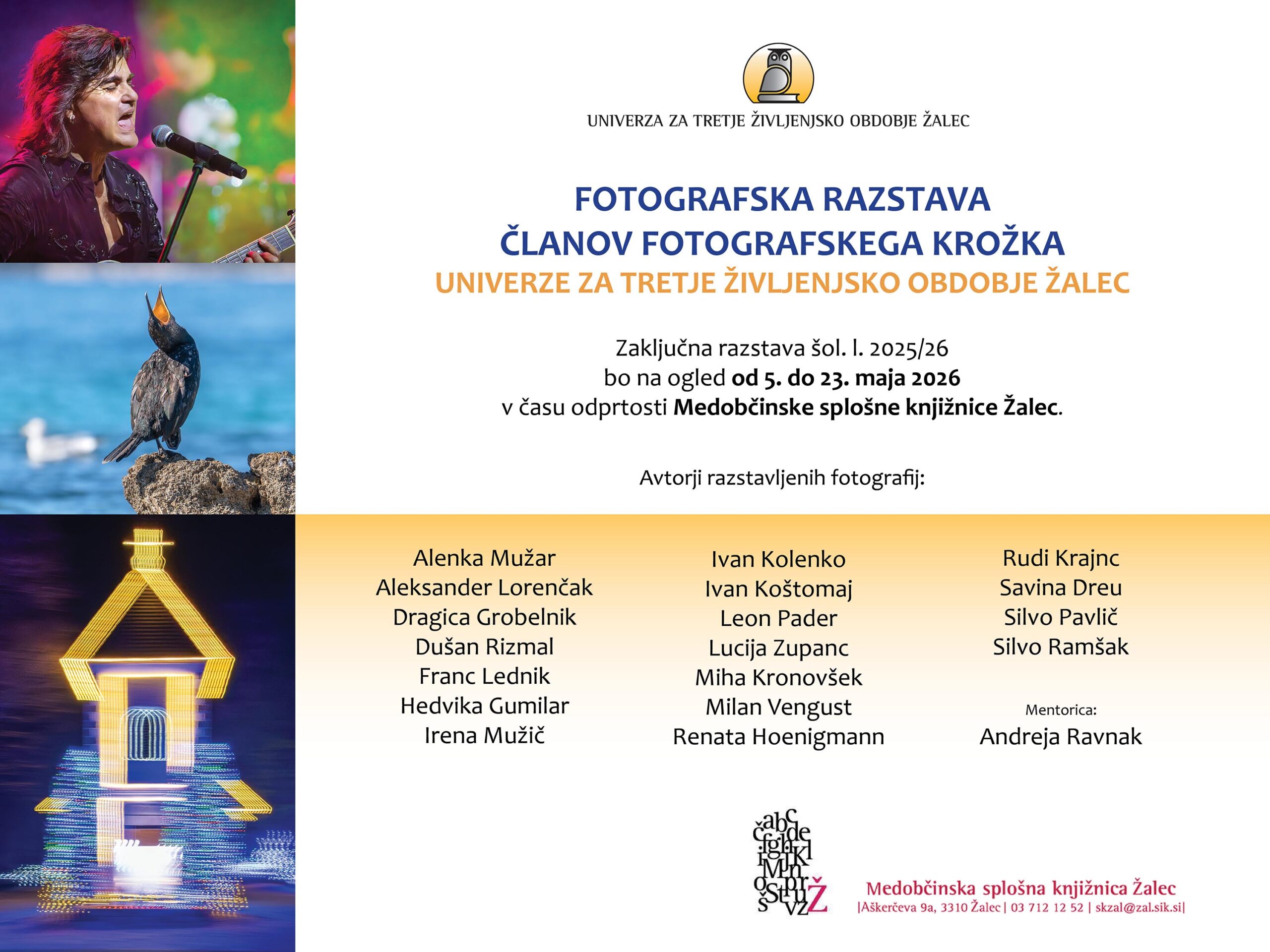 Od srede, 18. marca, do torka, 31. marca 2026, je bila v Občinski knjižnici Žalec na ogled razstava podvodne fotografije Obrazi oceana Mihe Gutmana. Miha Gutman je 14-letni potapljač in podvodni fotograf, ki prihaja iz potapljaške družine, kjer je ljubezen do morja prisotna že od zgodnjega otroštva. S potapljanjem in podvodno fotografijo se je začel ukvarjati zelo mlad, navdih pa črpa iz sveta tišine, svetlobe in gibanja, ki ga najde pod morsko gladino. Kljub svoji mladosti je Miha že prepoznan v svetu podvodne fotografije. Nedavno je osvojil 1. mesto v …