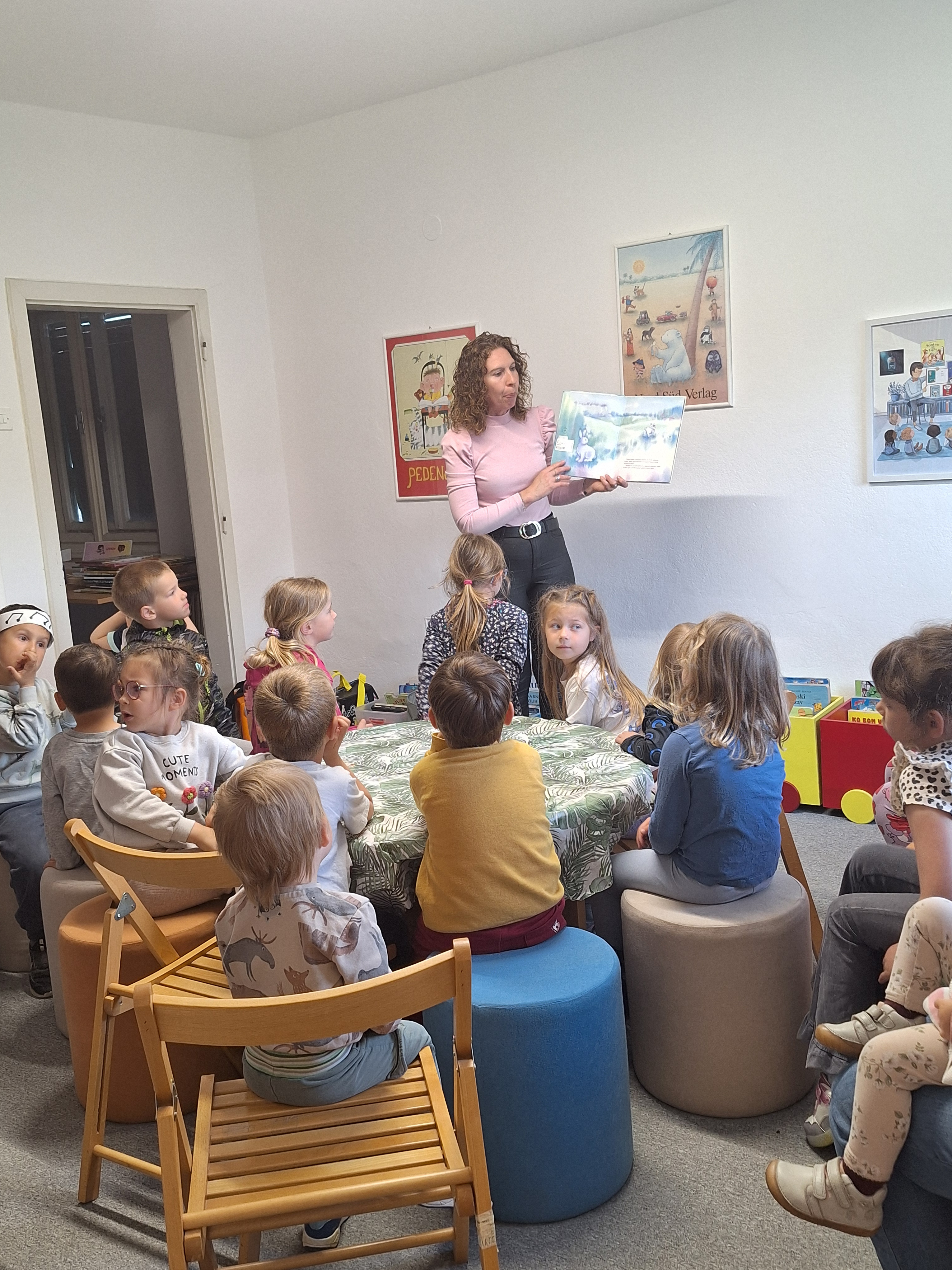 Nekatere odgovore smo našli v pravljici o zajčku, ki se je podal na pot, da bi jo našel. Druge pa smo odkrili skozi pogovor. Otroci so povedali, da pomlad prinaša toplo sonce, raznobarvne cvetlice, zelena drevesa in daljše dni. Vse to nas vabi v naravo, ki v svoj objem privablja tudi pridne čebele, pisane metulje in številne druge živali, ki raziskujejo njene darove.