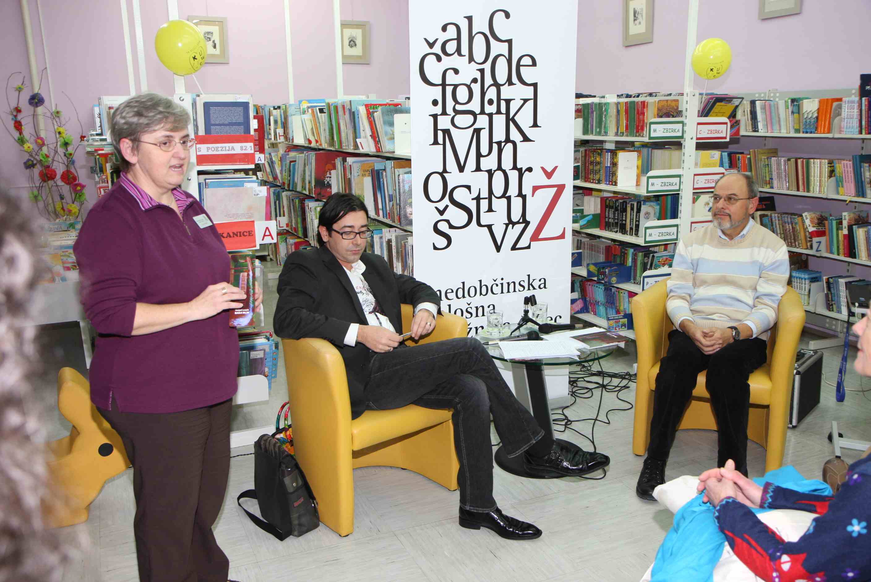2. decembra smo pospremili na pot knjigo Babji mlin, domačina Matjaža Lesjaka. To je njegovo drugo literarno delo, lani je bralcem podaril knjigo Druge zgodbe. Z njim se je o knjigi pogovarjal njegov prijatelj Ivo Mohorič. Takoj na začetku je poudaril, da knjiga pripoveduje o razmerjih med ljudmi. Na žalost je to področje, kateremu namenjamo premalo pozornosti. Avtor pravi, da je knjiga tipično slovensko delo, da je v njej vsega po malem. Na začetku nas je z besedami želel popeljati v eksotične kraje in nam dvigniti temperaturo z opisom vročine na plaži. Zgodba je sodobna in se lahko dogaja kjerkoli. Po mnenju njegovega sogovornika in še nekaterih, ki so knjigo prebrali, največ pozornosti pritegnejo odlično zasnovani in opisani značaji glavnih junakov. Prijeten pogovor o knjigi je popestrila glasba, saj je Matjaž Lesjak prepeval in še prepeva v različnih glasbenih sestavih. Zapel je tudi odlomek iz ljudske pesmi, katera mu je ponazarjala melodijo napisanega teksta. Sogovornika sta se odlično dopolnjevala in zbranim slikala glavne junake. Predstavila sta vprašanje, h kateremu se glavni junak vedno znova vrača, ali je ali ni kupil ženske. Pogosto sta se dotaknila njune skupne teme, astrologije in posredno tudi vedeževanja. V romanu je prisoten urok in oba sta bila mnenja, da so to stvari, katere imajo lahko zelo negativen vpliv na ljudi, zato je treba vedeti, kaj in koliko komu povedati. Matjaž Lesjak pravi, da je vsako delo malo avtobiografsko. Pogosto uprizorjeni babji mlini na panjskih končnicah, kjer meljejo in iz starih žensk delajo mlade, so dali knjigi naslov.