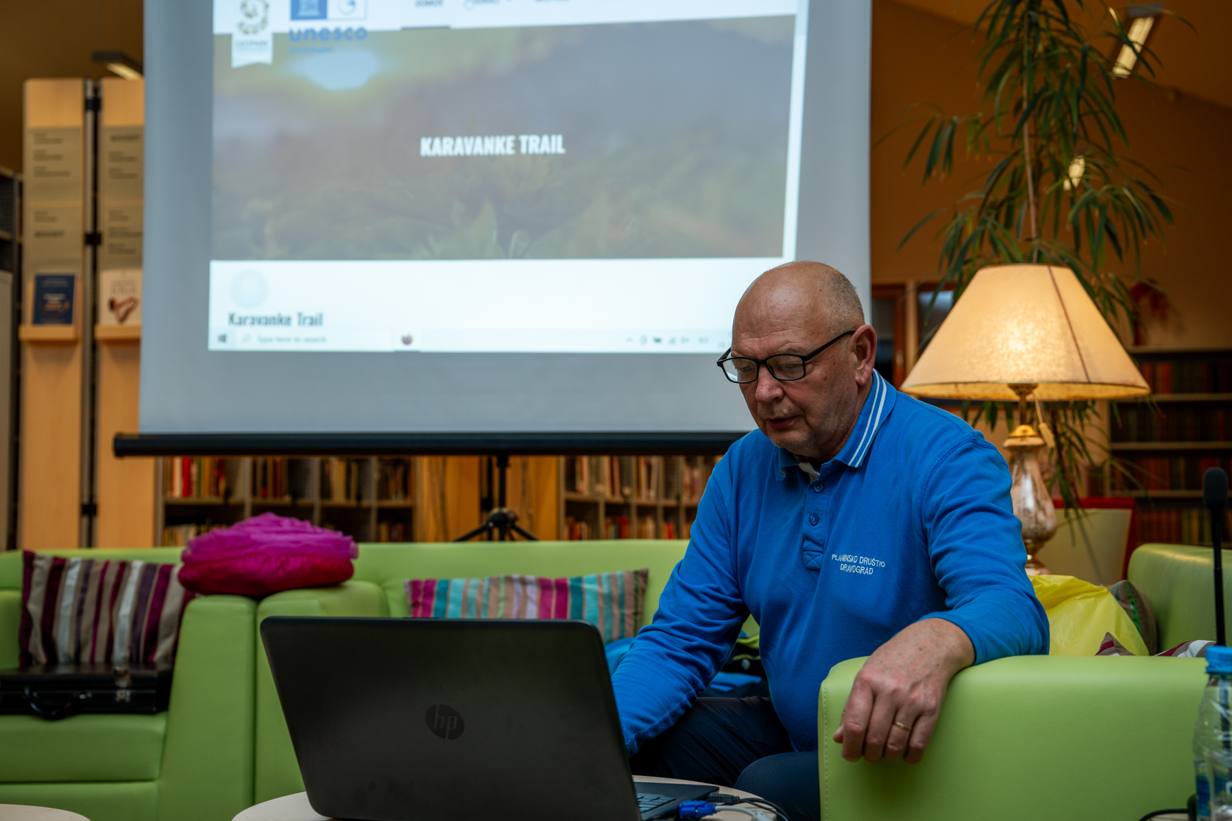 V četrtek, 15. februarja 2024, nas je v Občinski knjižnici Prebold v sliki in besedi po prekrasnih vrhovih na območju Geoparka Karavanke popeljal Jožef Kladnik, planinec in planinski vodnik Planinskega društva Dravograd.