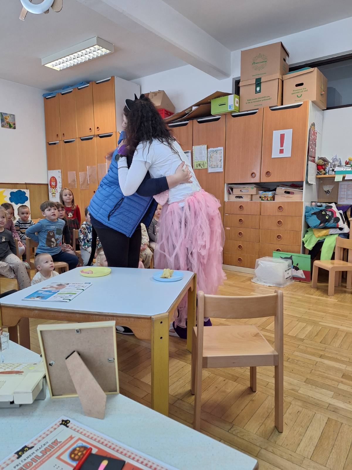 Ker sta vrtca Zabukovica in Liboje nekoliko oddaljena od Občinske knjižnice Žalec, smo se v knjižnici odločili, da praznično veselje in čarobnost Murijeve zgodbe ponesemo k otrokom v vrtec. V sredo, 10. decembra 2025, je tako otroke vrtcev obiskal sam maček Muri s prijatelji. Popeljal jih je v svet mačjih dogodivščin in otroci so se zabavali ob mačkovih vragolijah ter zanimivih pripetljajih njegovih prijateljev.
