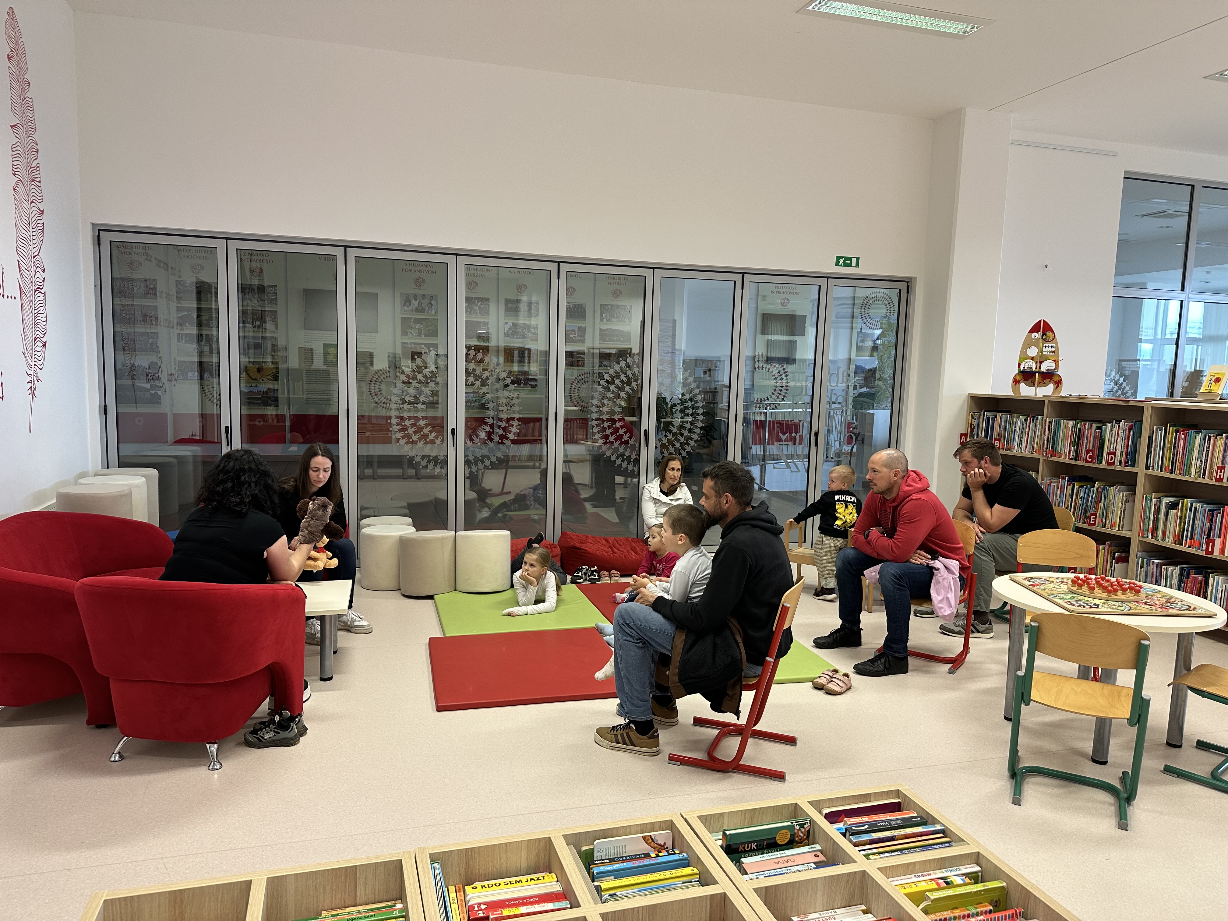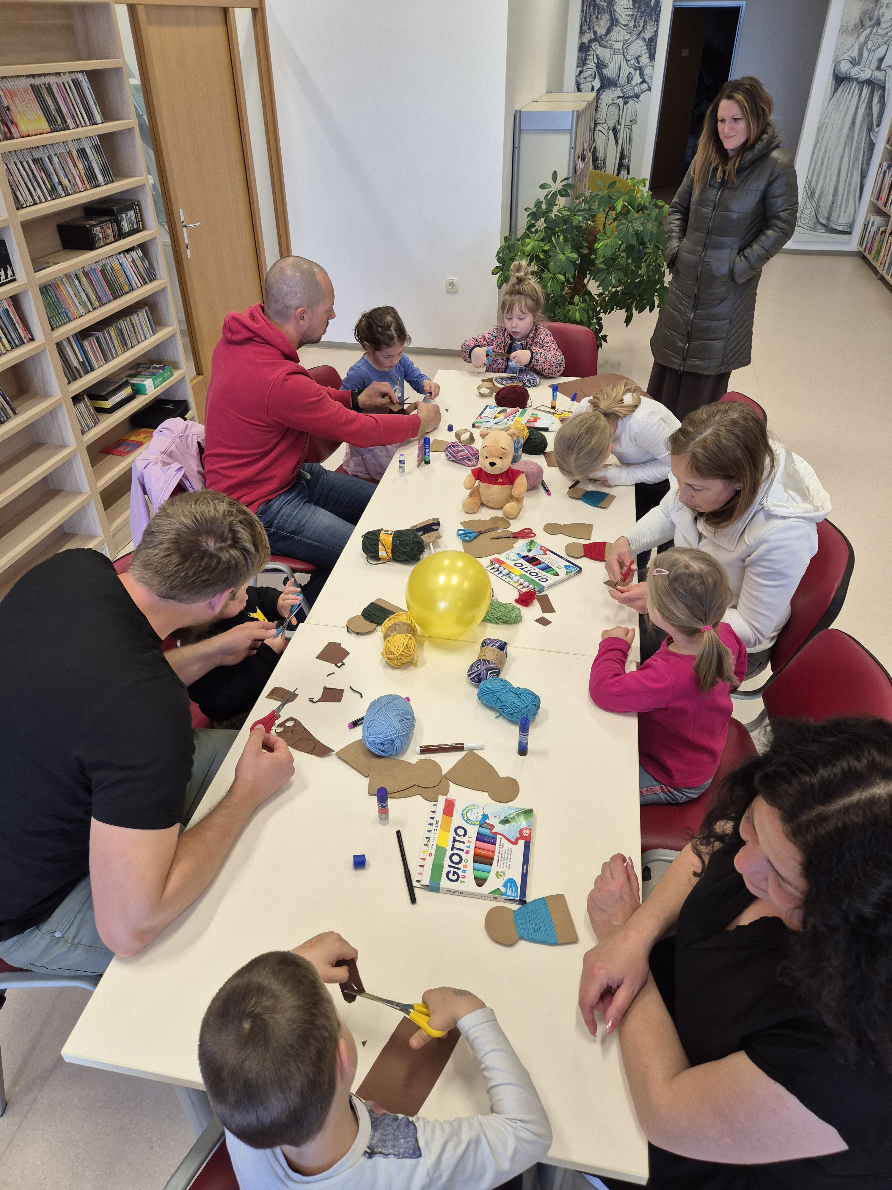 Prve zgodbe o medvedku Puju letos praznujejo sto let. Da bi ta medvedkov jubilej še posebej proslavili, sva knjižničarki Tina in Ana v torek, 21. aprila 2026, znamenitega Puja pripeljali na obisk v braslovško knjižnico.