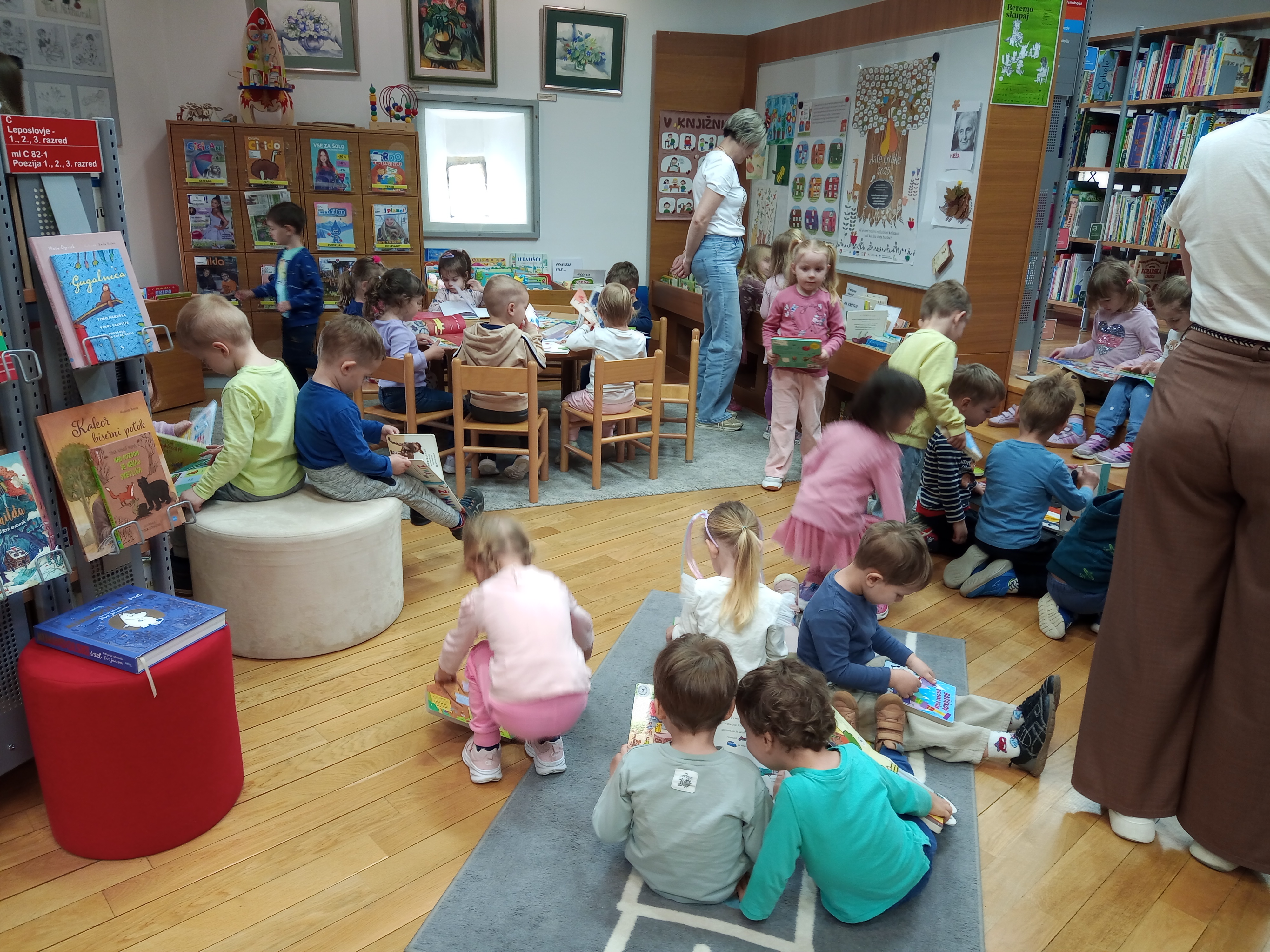 V Občinski knjižnici Polzela smo 16. aprila 2026 gostili dve skupini otrok iz Vrtca Polzela,  starih od treh do štirih let, z vzgojiteljicami. Za mnoge je bil to prvi obisk knjižnice, zato smo jim želeli pričarati prijetno in igrivo izkušnjo.