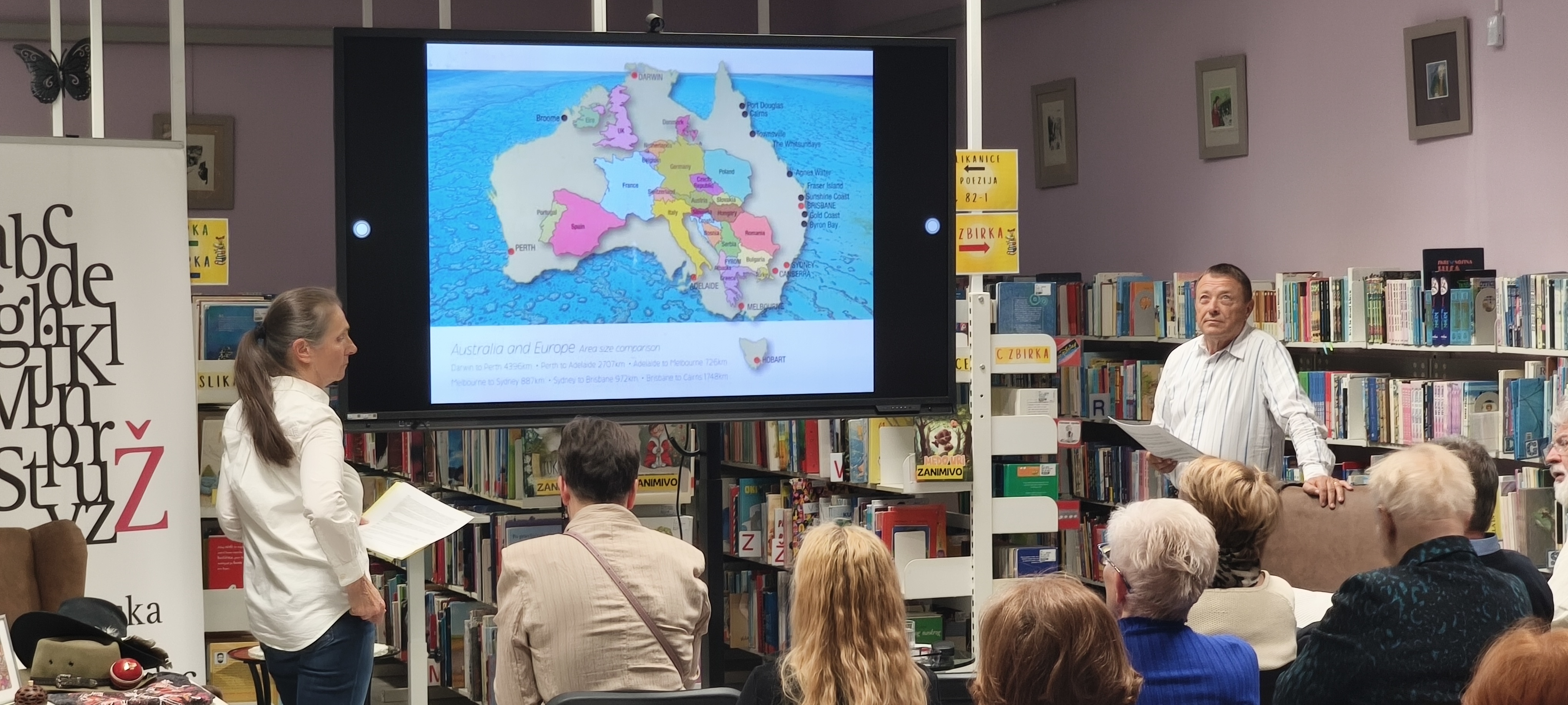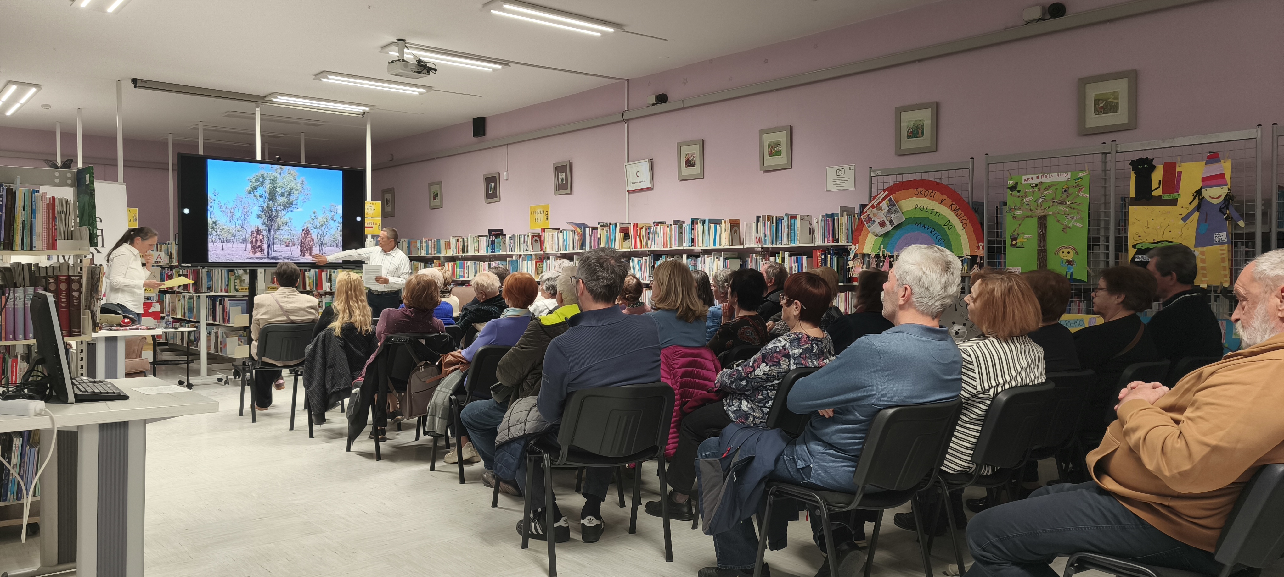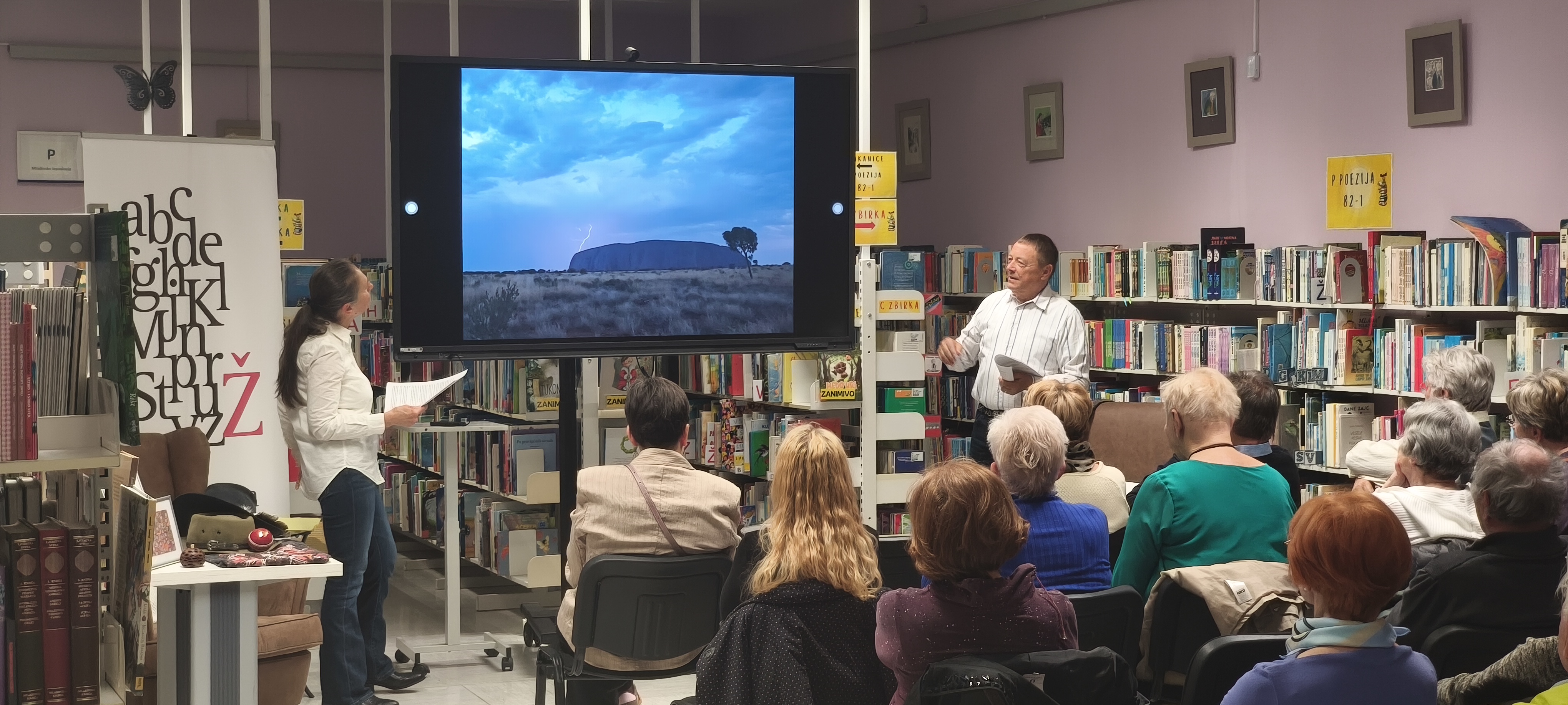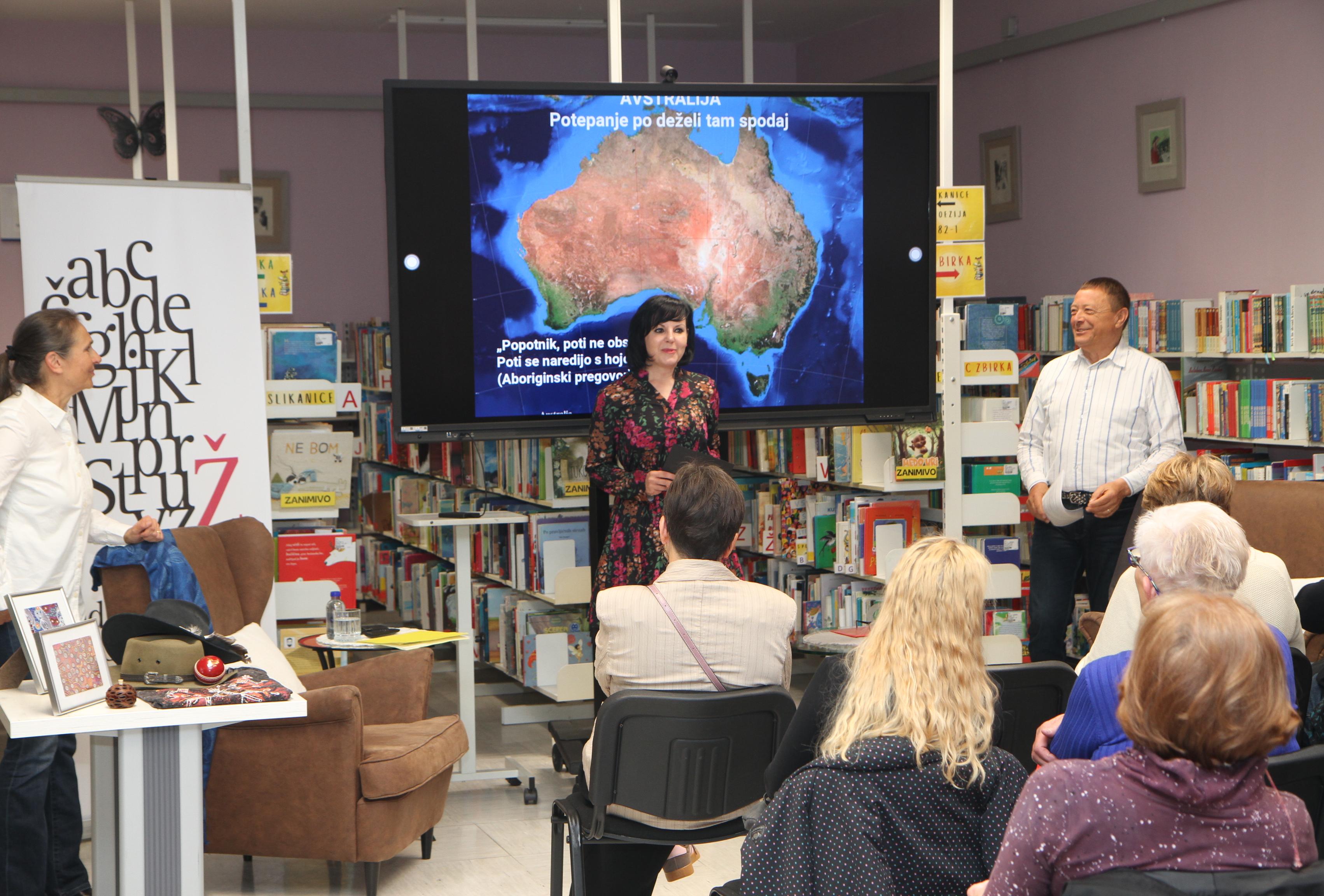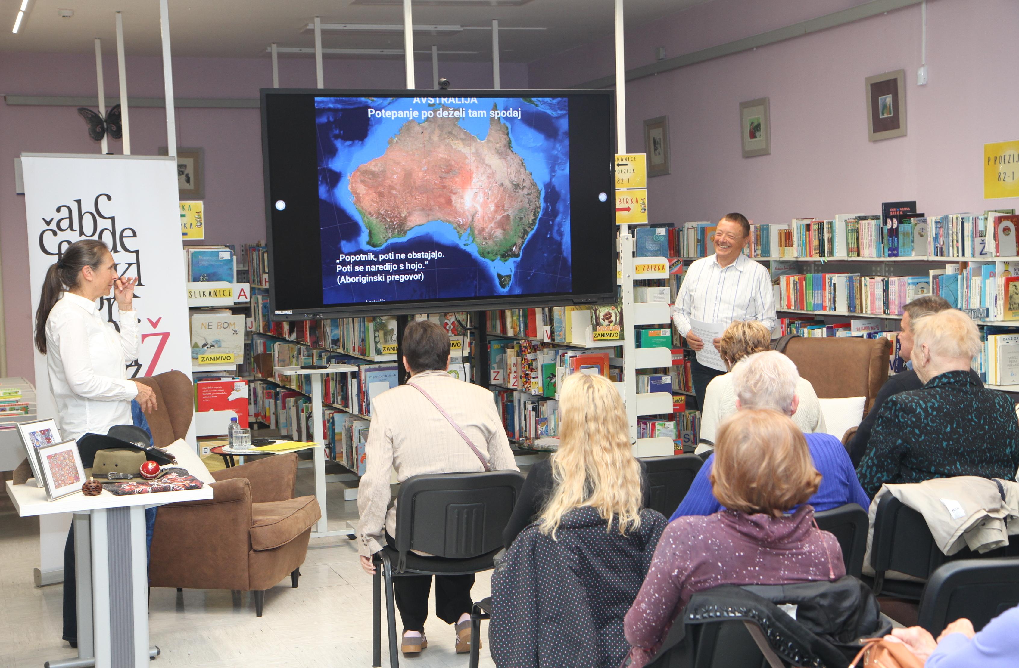 V petek, 10. aprila 2026, je v Občinski knjižnici Žalec potekalo potopisno predavanje z naslovom Potepanje po deželi tam spodaj. Po Avstraliji sta potovala in raziskovala dr. Mojca Pešec in njen mož Peter Einfalt.