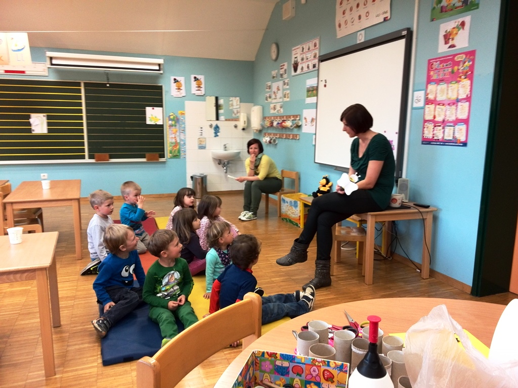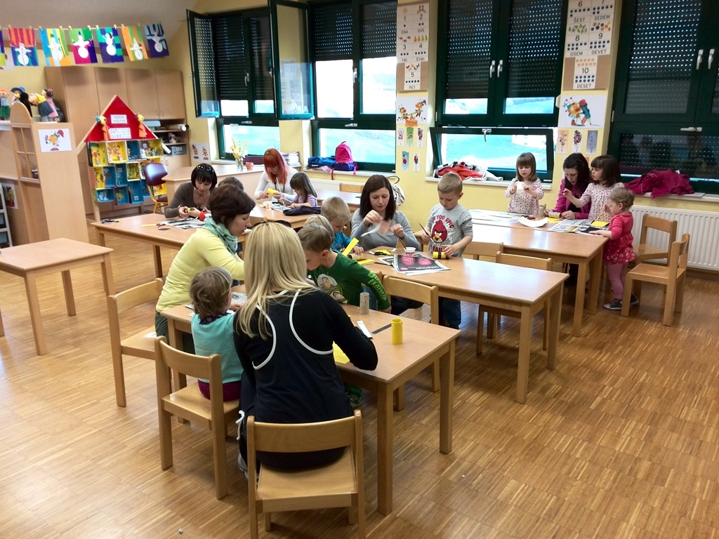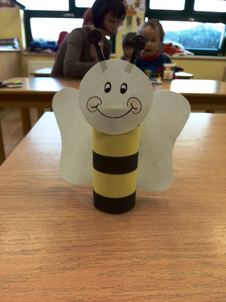 Na tokratni, pomladni pravljični uri smo skupaj z radovedno čebelico Tinko raziskovali pomlad. Občudovali smo rumene trobentice ter vijoličaste vijolice in se čudili belemu zvončku. Naša vedoželjna čebelica se je v svoji raziskovalni vnemi celo izgubila, a ji je prijazen ptiček pomagal, da je spet našla svojo mamico. Naučili smo se, da imajo čebele na vsaki strani glave veliko oko, na temenu pa še tri pikčasta očesa. Na glavi imajo par tipalnic, s katerima tipajo, vohajo in okušajo. Imajo dva para prosojnih kril, s katerimi zelo hitro utripajo. Letijo lahko v vse smeri in tudi lebdijo v zraku. S čeljustmi čebelice nabirajo cvetni prah, negujejo ličinke in še marsikaj. Imajo tri pare nog, v koških na zadnjem paru nog čebela nosi cvetni prah s cvetja v panj. Čebele lahko nabirajo hrano zelo daleč od panja. Vedno se znajo vrniti, pri čemer se ravnajo po soncu. Ko se utrujene vrnejo v panj, odložijo nabrano hrano, nektar in pelod ter se vrnejo na pašo. Mi pa smo si na koncu izdelali še svoje čebelice, ki bodo skupaj z nami lahko uživale v sončni pomladi.