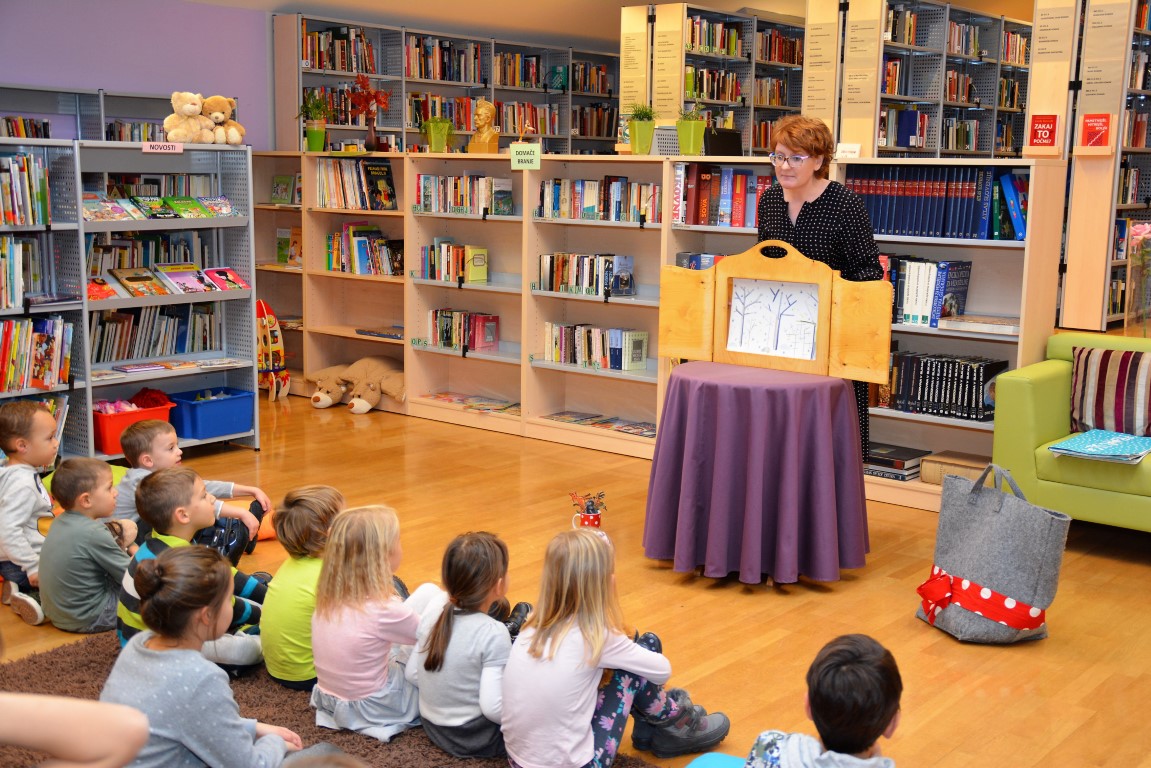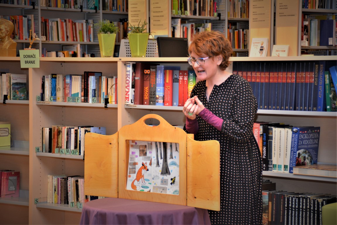 Pravljično gledališče Maje Furman na obisku v Občinski knjižnici Prebold