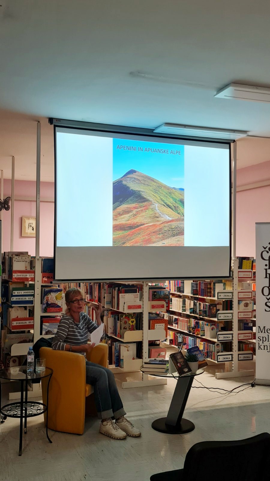 Ob projekciji fotografij s poti po španskem Caminu in italijanskih Apeninih nas je popeljala v leposlovni roman z navdihom potopisa Niti koraka več. Prvi del trilogije opisuje pot po delno prehojenem Caminu Frances, eni izmed najbolj obleganih romarskih poti na svetu. Pot po Caminu je le okvir, v katerega je avtorica umestila zgodbo o večnem razkolu med svetom in človekovo notranjostjo. V koraku z volkom pa je nadaljevanje zgodbe, v kateri bralcu ne le približa skrivnosti toskanskih Apeninov in puščave Accona, temveč tudi skrivnosti iz globine človeške duše. V nastajanju je že tretji del potopisnega romana, ki nas bo, kot nam je zaupala avtorica, popeljal na Kreto.