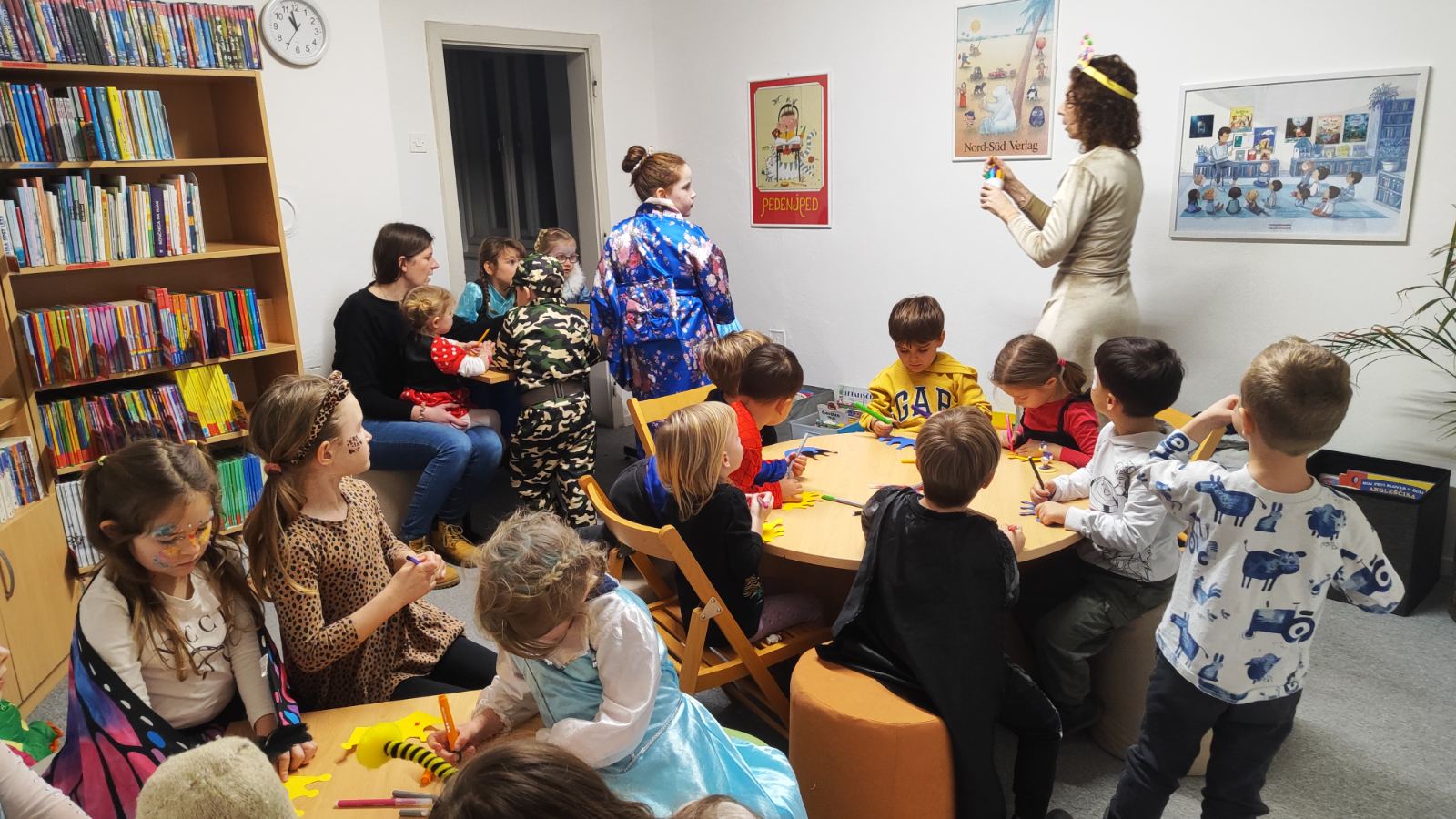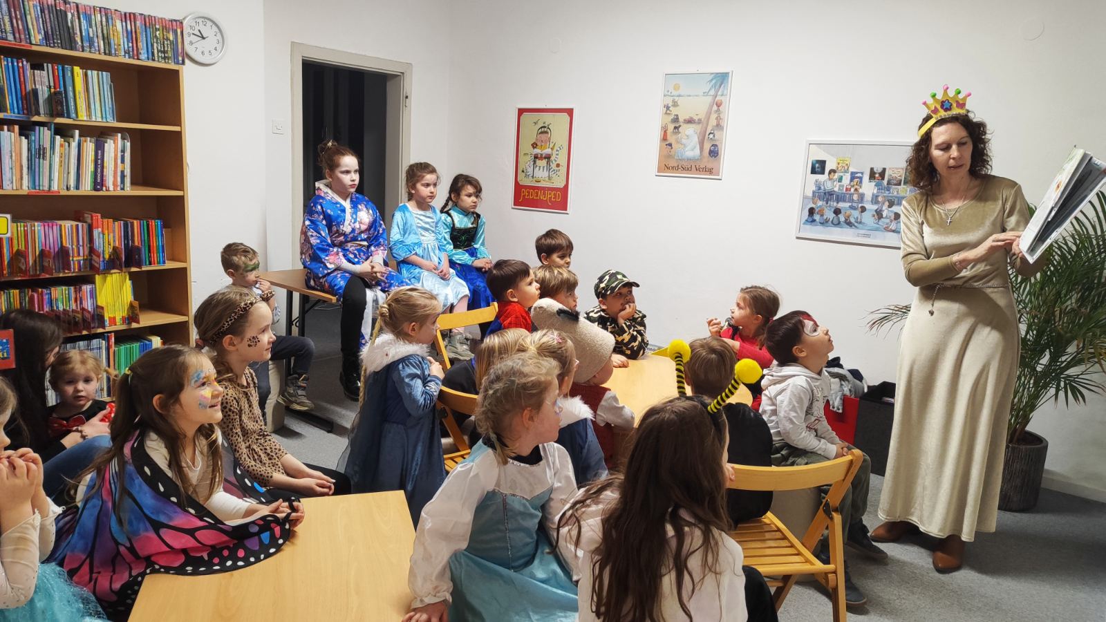 Obiskali so nas princeske, tiger, metulj, zajček, čebelica, vojak, superjunaki, kot sta Batman in Spiderman, japonski bojevniki in celo gejša. Ker je bilo med obiskovalkami in obiskovalci največ princesk, smo tokrat pravljico namenili prav njim. Knjižničarka, ki sem se za to priložnost prelevila v princesko, sem jim predstavila interaktivno pravljico, pri kateri so sodelovali vsi zbrani. Skupaj smo izbirali poti, ki so nas vodile do različnih zapletov in razpletov, a nas na koncu vedno pripeljale do srečnega konca.