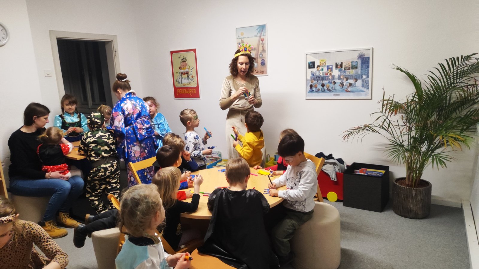 Na pustni torek, 17. februarja 2026, je bilo v Občinski knjižnici Tabor veselo in razigrano. Na pravljično urico so tokrat prišle same pustne šeme, male in velike.