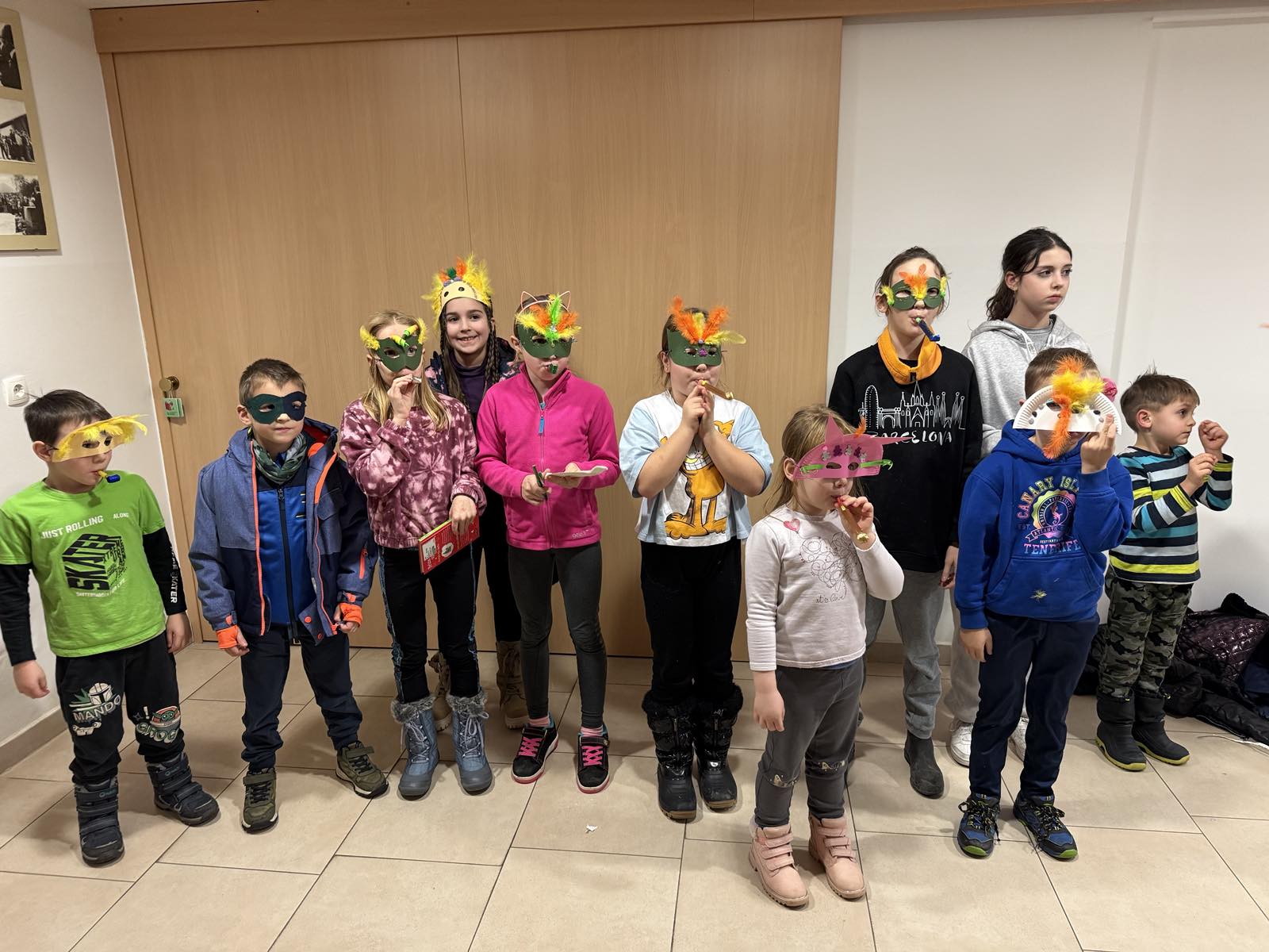 Po pripovedi je sledila ustvarjalna delavnica, kjer so otroci izdelovali pustne maske. Pri ustvarjanju so uporabljali različne materiale, kot so papir, barve, bleščice, trakovi in perje. Njihove pustne maske so bile raznolike, barvite in domiselne, kar je prispevalo k prijetnemu vzdušju dogodka. S pravljično uro smo otrokom omogočili, ne le stik z bogato kulturno dediščino, temveč tudi zabavno pripravo na pustne dni.