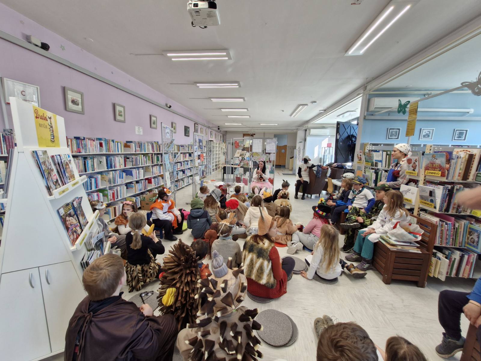 Že ob prihodu je bilo jasno, da to ne bo povsem navaden knjižnični dan, saj so vsi otroci in njihove učiteljice prišli zamaskirani v najrazličnejše like. Med policami so se sprehajale princese, čarovniki, živali, superjunaki in še marsikdo. Tudi knjižničarka Tina ni bila čisto prava knjižničarka Tina. Za en dan se je spremenila v metuljčico, ki je s pisanimi krili popestrila dogajanje in otroke popeljala v čarobni svet knjig.