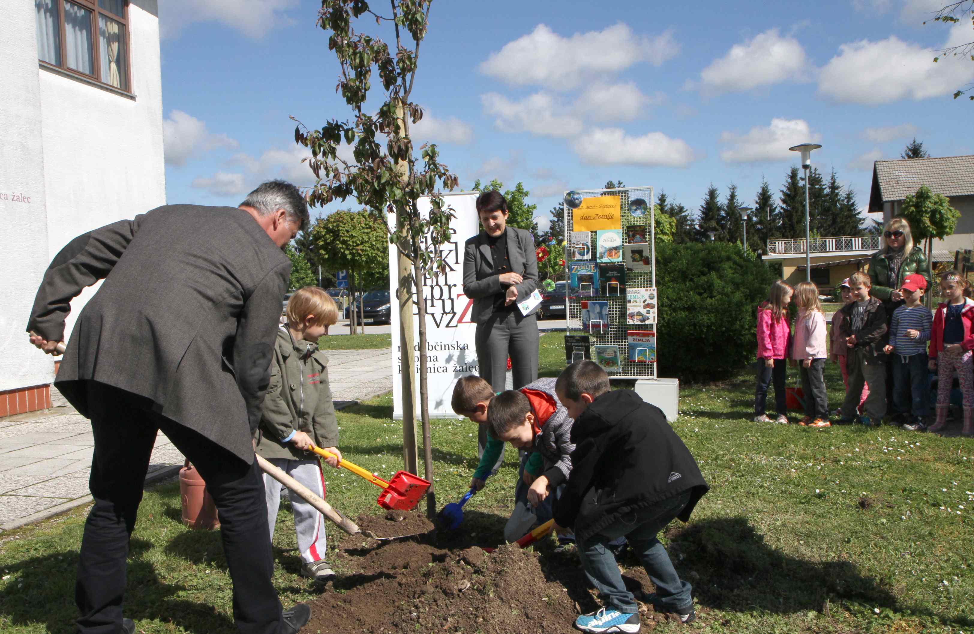 Na SVETOVNI DAN ZEMLJE smo pred Medobčinsko splošno knjižnico Žalec s pomočjo otrok iz Vrtca Občine Žalec in župana Občine Žalec Janka Kosa posadili jablano, ki bo spominjala na dan, ko je bila prva zaključna prireditev projekta Tudi mali Savinjčani berejo, v katerem je sodelovalo kar 250 mladih bralcev iz vseh vrtcev v Občini Žalec.