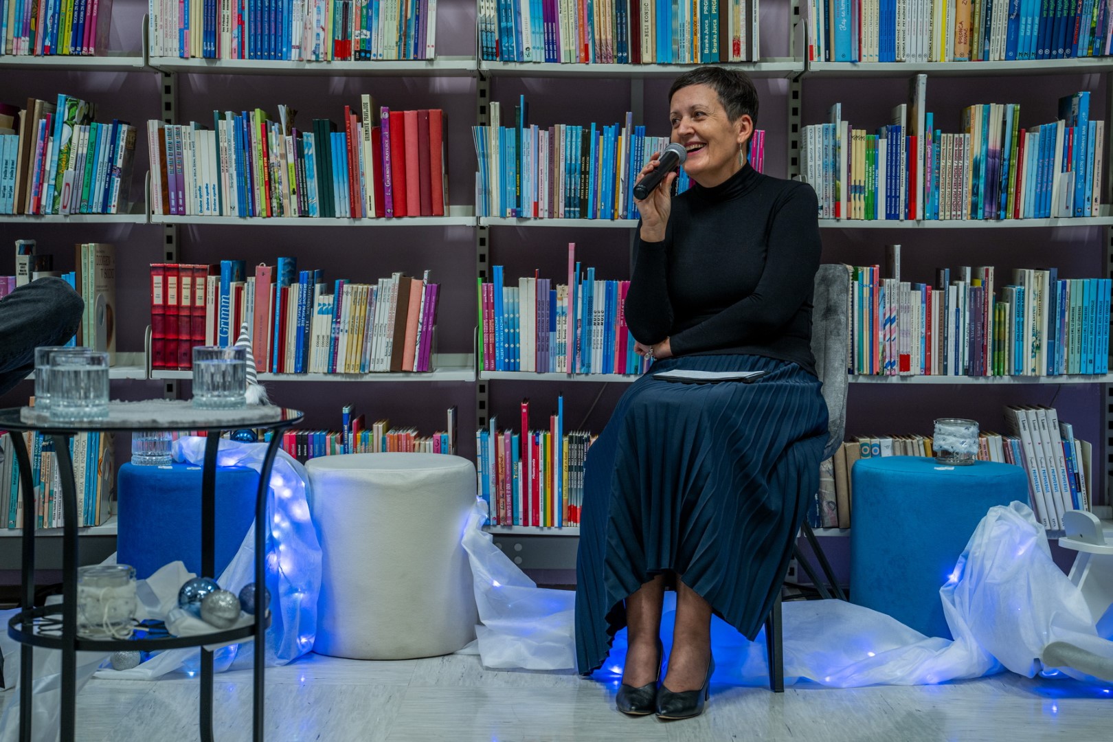 Naja in Franci sta kar nekajkrat zapela tudi v petkovem večeru in navdušila občinstvo, ki je do zadnjega kotička napolnilo žalsko knjižnico.