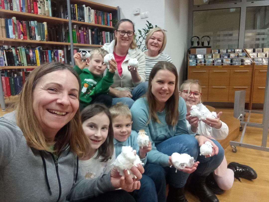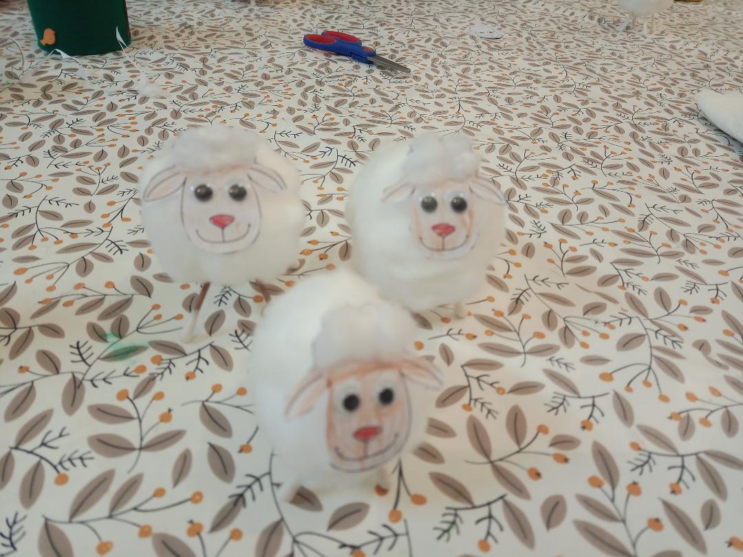 V ustvarjalnem delu pravljične ure smo iz stiropornih kroglic, vate in drugih materialov izdelovali pastirčkove ovčke s puhastimi kožuščki ter nasmejanimi obrazki. Tako smo razvijali svojo domišljijo, natančnost in ročne spretnosti. Predvsem pa smo se zabavali in uživali v skupnem druženju.