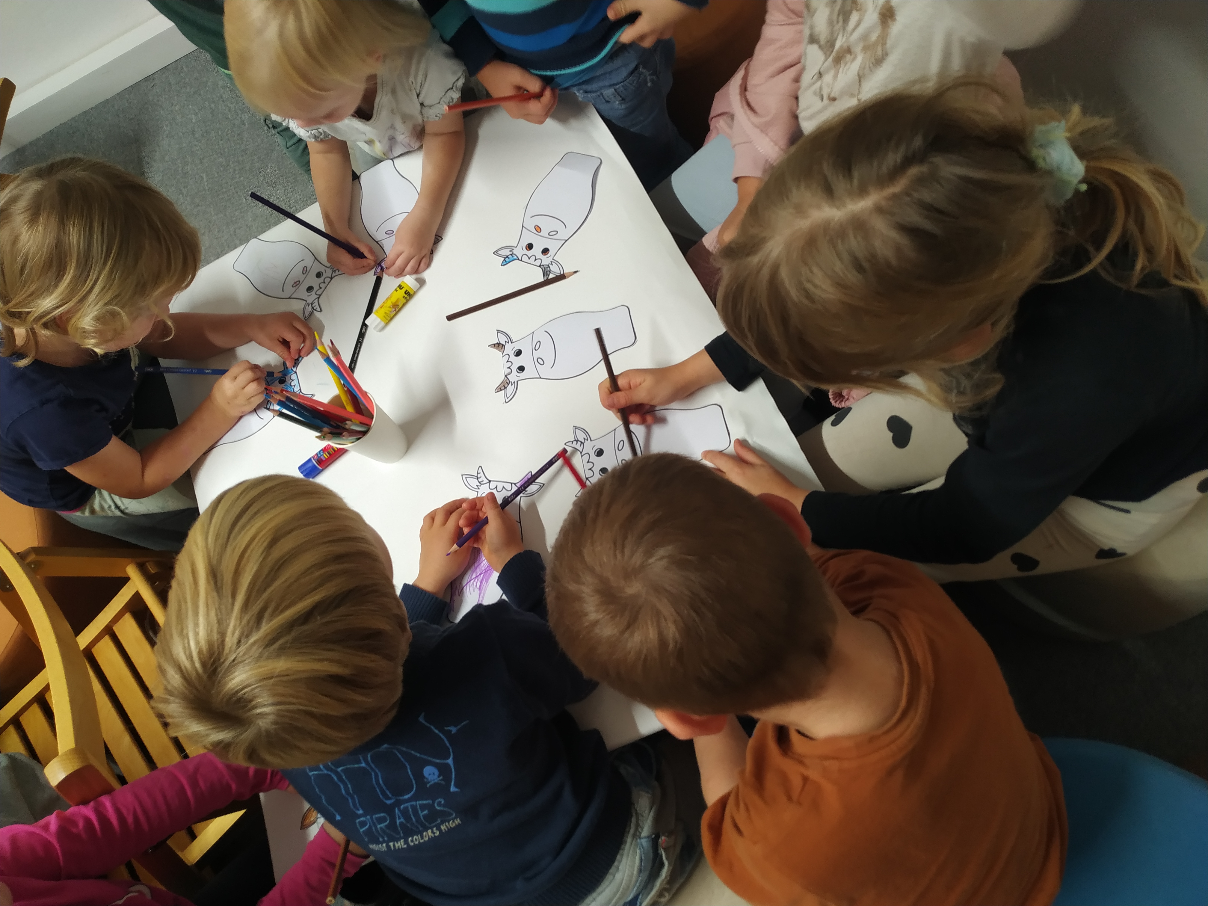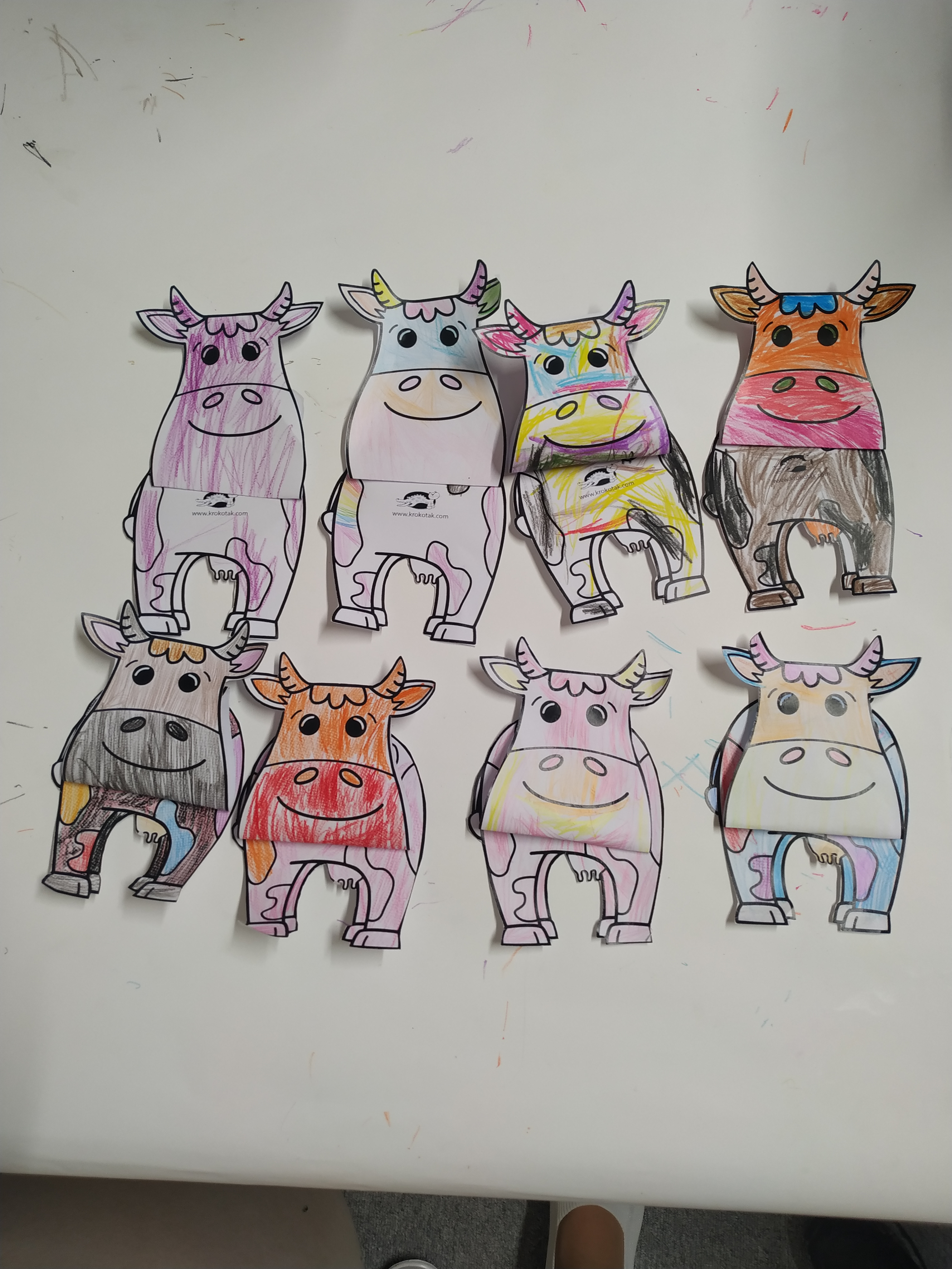 Otroci so nato z veseljem ustvarjali. Skupaj smo izdelali papirnate kravice, pa tudi poimenovali so jih. Bile so različnih barv, kot je raznolika tudi njihova domišljija. S tem smo sklenili še eno čudovito pravljično urico, ki nam bo ostala v lepem spominu.