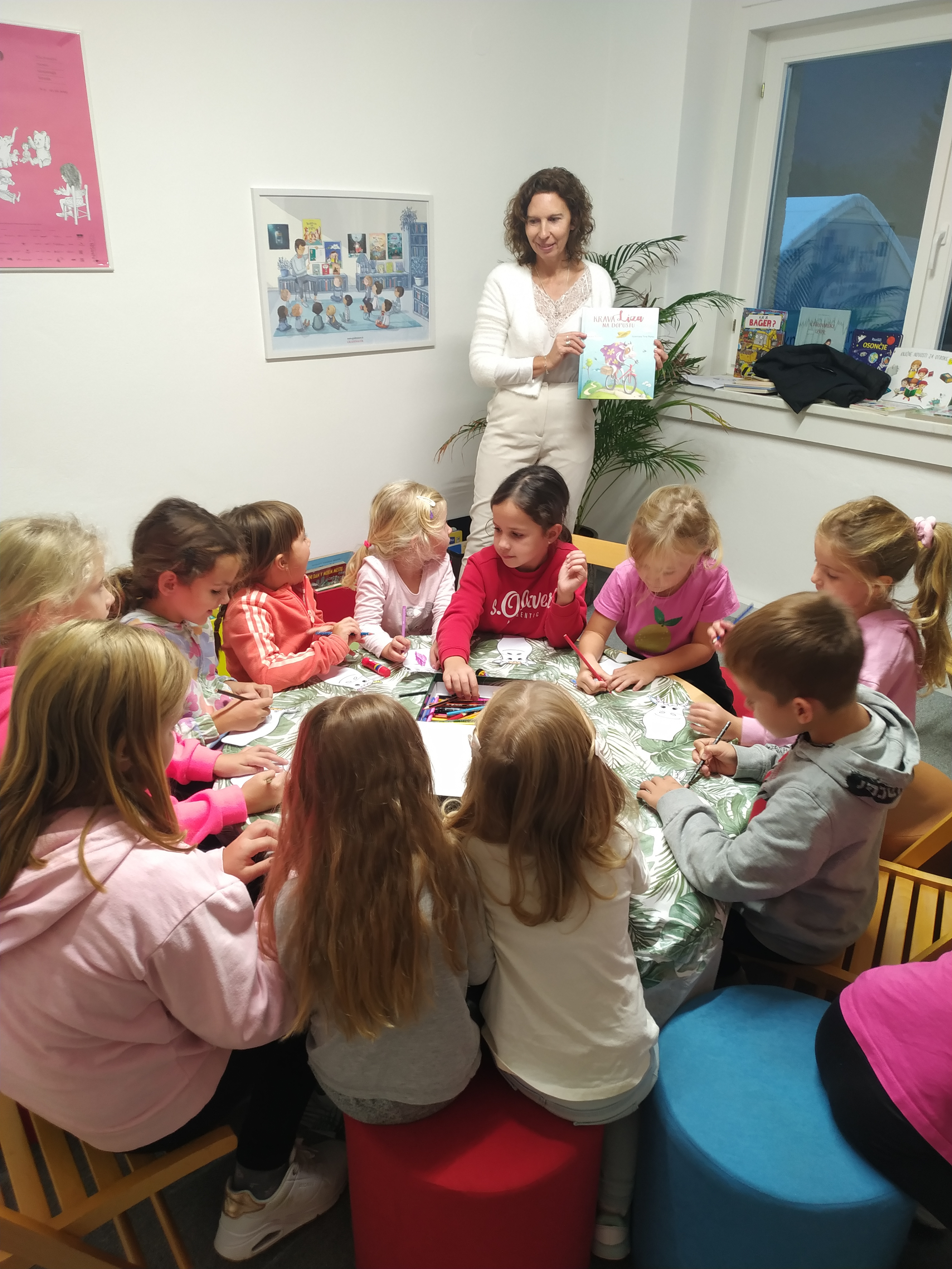 Da bi jim popestrila začetek novega šolskega leta, sem knjižničarka izbrala pravljico o kravi, ki se je odpravila na dopust, da bi si odpočila od vsakodnevnih obveznosti. Ker ravno poteka nacionalni mesec skupnega branja, ki poudarja pomen vsakodnevnega glasnega branja in pripovedovanja, sem otroke spodbudila, naj skupaj s starši berejo čim več in čim pogosteje, saj so knjige pravi zaklad znanja, informacij, spominov ter domišljije.